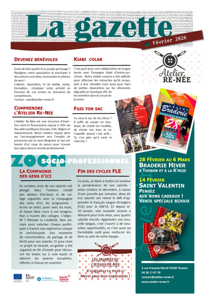 Gazette Atelier Re-Née Février 2026